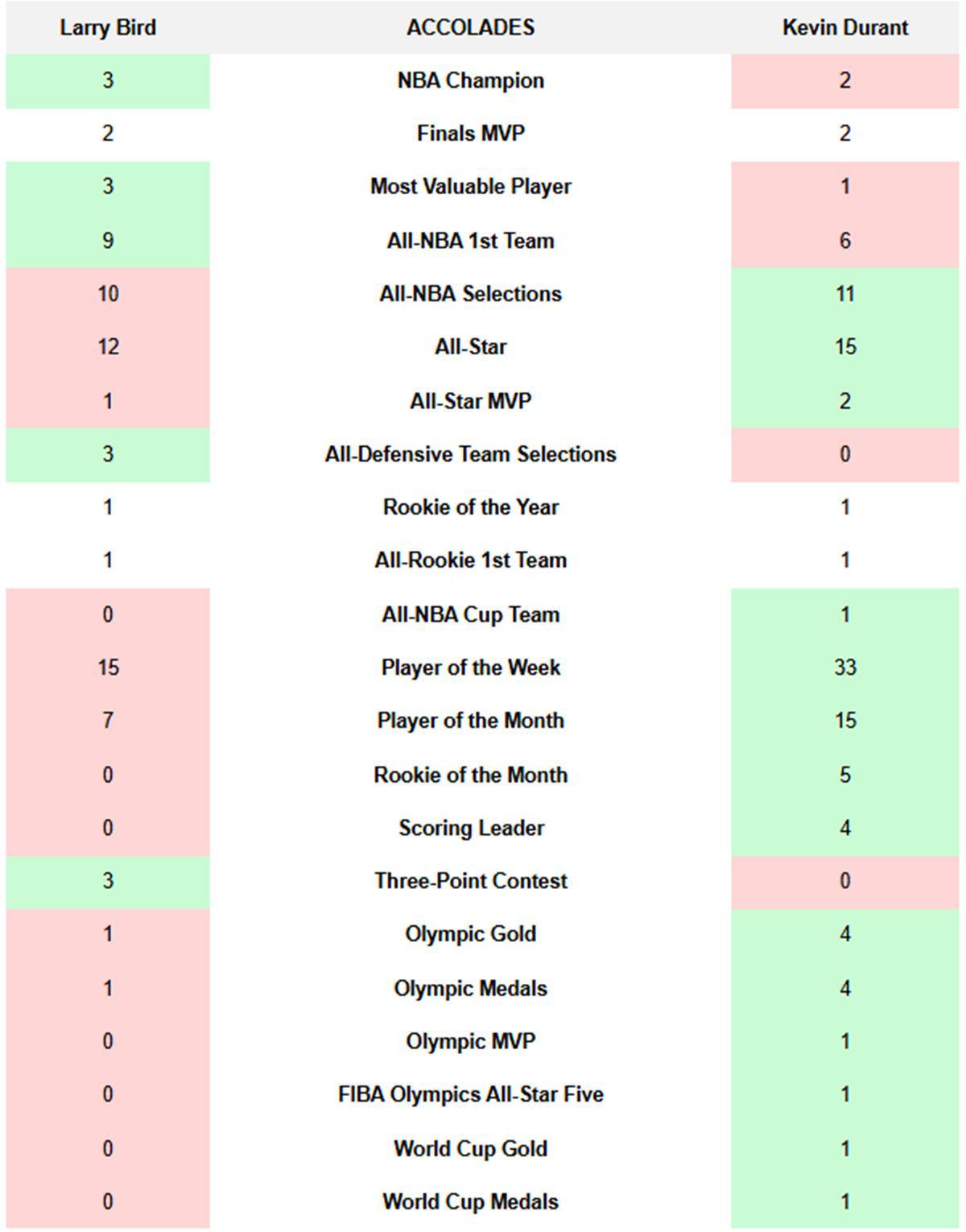 第七项:最佳奖项排名(杜兰特2:0伯德)